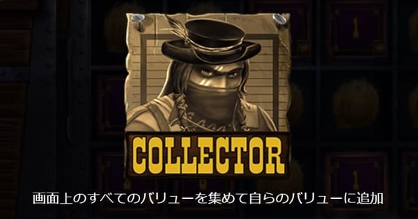 Collector(コレクター)は特殊キャラクターの一つです。画面上のすべてのコインバリューを集めて自らのバリューに追加します。大量のコインが並んでいる時に出現すると大配当につながります。