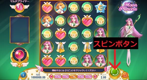 ムーンプリンセスのゲームの流れと特殊フィーチャーを解説します。グリッド型ならではの連鎖消去とガールパワーがこのスロットの醍醐味です。