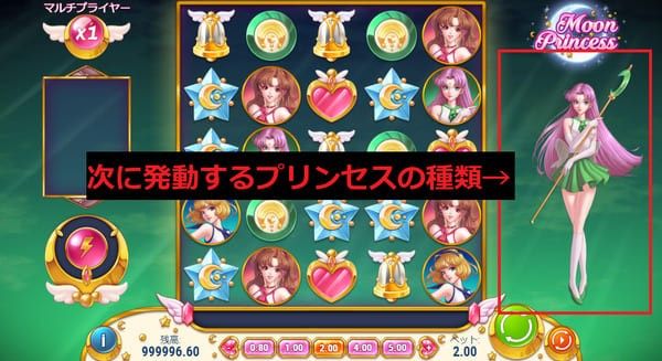 配当が成立しなかった時に、グリッド右側に立っているプリンセスが特殊能力を発動します。 どのプリンセスが立っているかはスピンごとにランダムで変わります。