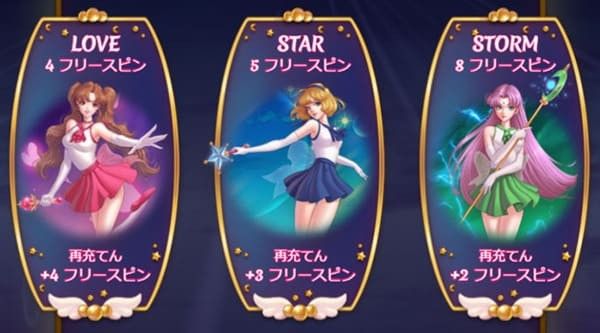 | STAR | 5回 | +3回 | 毎スピンSTARのガールパワー(ワイルド追加)が発動 |