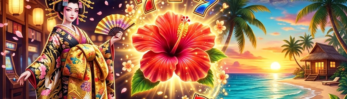 パチスロ風の元祖的存在。南国の楽園がテーマ。リスピン連鎖→サンセットボーナス→ハイビスカスRUSHの流れが特徴。RTP97%と高還元率。3リール×3段のシンプル構成。