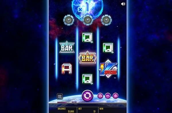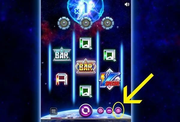 低配当シンボルはA/K/Q/J等のカードシンボルで、ネオン風のデザインが施されています。 宇宙テーマに合わせた光るデザインが特徴的です。