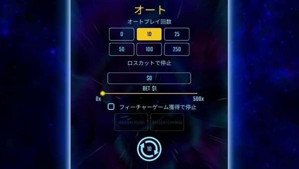 | RAIGEKI CHARGE | あり(Vシンボルでマルチプライヤー上昇) |