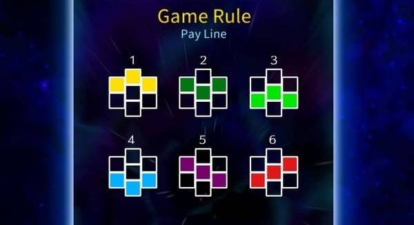 6つのペイラインのいずれかで同一シンボルが3つ揃い、配当が支払われます。