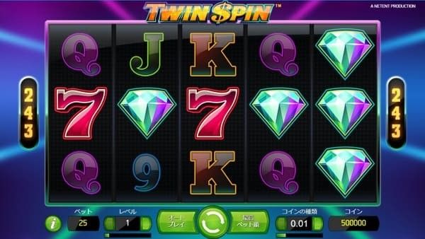 RTP96.55%・243ウェイズ・ツインリール機能搭載のツインスピンを、仮想通貨カジノでプレイしましょう。KYC不要・即入金・高速出金の仮想通貨カジノなら、すぐに遊び始められます。