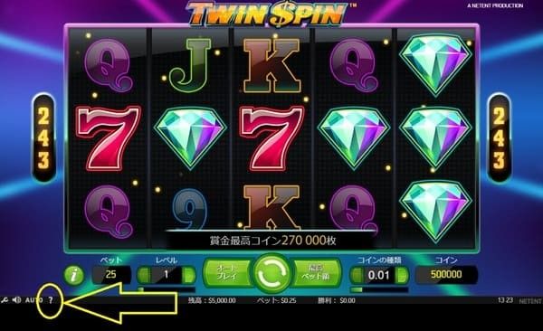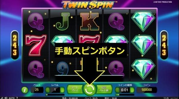 ツインスピンのゲームの流れと唯一の特殊フィーチャーであるツインリール機能を解説します。