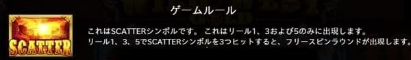 スキャッターシンボルはリール1、3、5にのみ出現します。 3つ揃うとフリースピンを獲得できます。