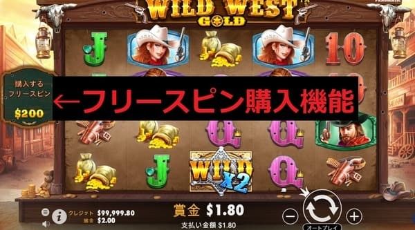 ベット額の100倍でフリースピンを直接購入できます。 例えば$1ベットの場合は$100で購入可能です。購入した場合も8回のフリースピンが付与されます。