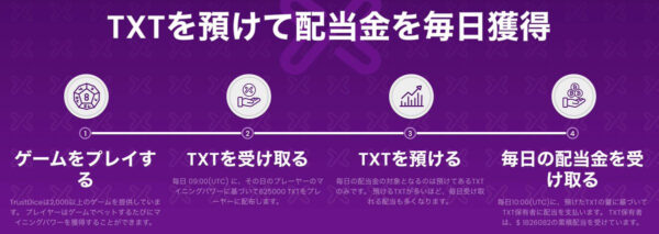 「トラストダイス独自のTXTトークンをマイニングできるのが面白い。ゲームをプレイするだけでTXTが貯まり、保有量に応じてカジノの利益の一部が配当としてもらえる。遊べば遊ぶほど報酬が増える仕組みで、他のカジノにはないユニークな特徴です。」