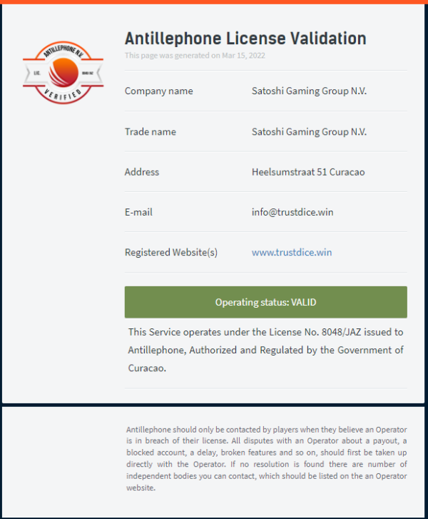 トラストダイス(TrustDice)は2018年に設立された仮想通貨特化型のオンラインカジノ&スポーツベッティングサイトです。 Satoshi Gaming Group N.V.がキュラソーで運営しており、独自のTXTトークンマイニングやフォーセット機能など、他のカジノにはないユニークな特徴を持っています。