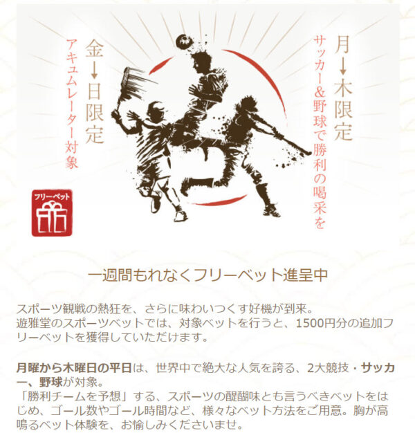 遊雅堂ではカジノ・スポーツの両方で期間限定キャンペーンが定期的に開催されています。