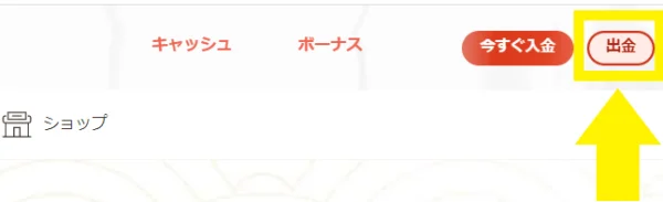 遊雅堂にログインし、画面右上のメニューから「出金」をクリックします。