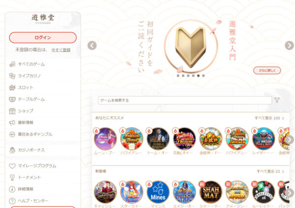 遊雅堂は日本市場に完全特化したオンラインカジノです。 ゲーム名が日本語で表示され、ベットや入出金もすべて日本円で行えるため、為替レートを気にする必要がありません。