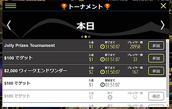 定期的に更新されるプロモーションのおかげで、常に新しい楽しみが見つかります。 トーナメントはランキング形式で上位入賞を目指す楽しさもあり、競争心をくすぐります。